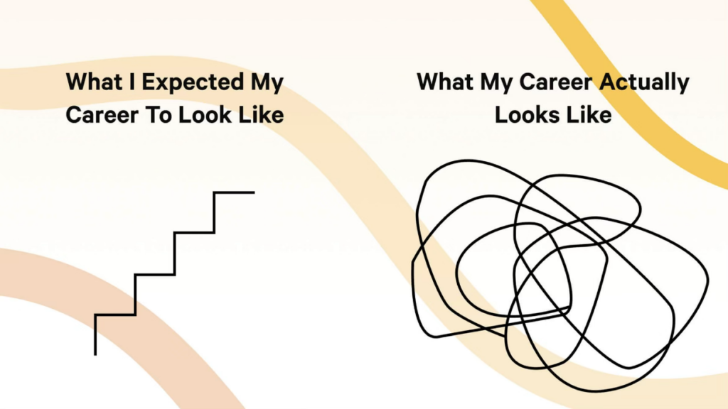 年青人會覺得自己將來的職業是圖1的左圖,是一級級上,或者家長都是這樣想的。但其實可能在頭十年八載,真正的狀況是右邊的情況,即是不知道自己在做什麼,要花不少時間探索自己的路向。英國和香港的家長很相似的地方是也很注重孩子的成長。最大的分別是英國的家長多數都很尊重子女自己的選擇如大學想讀什麼科或不讀大學直接出來工作,大部份都會讓子女有其自主權。
